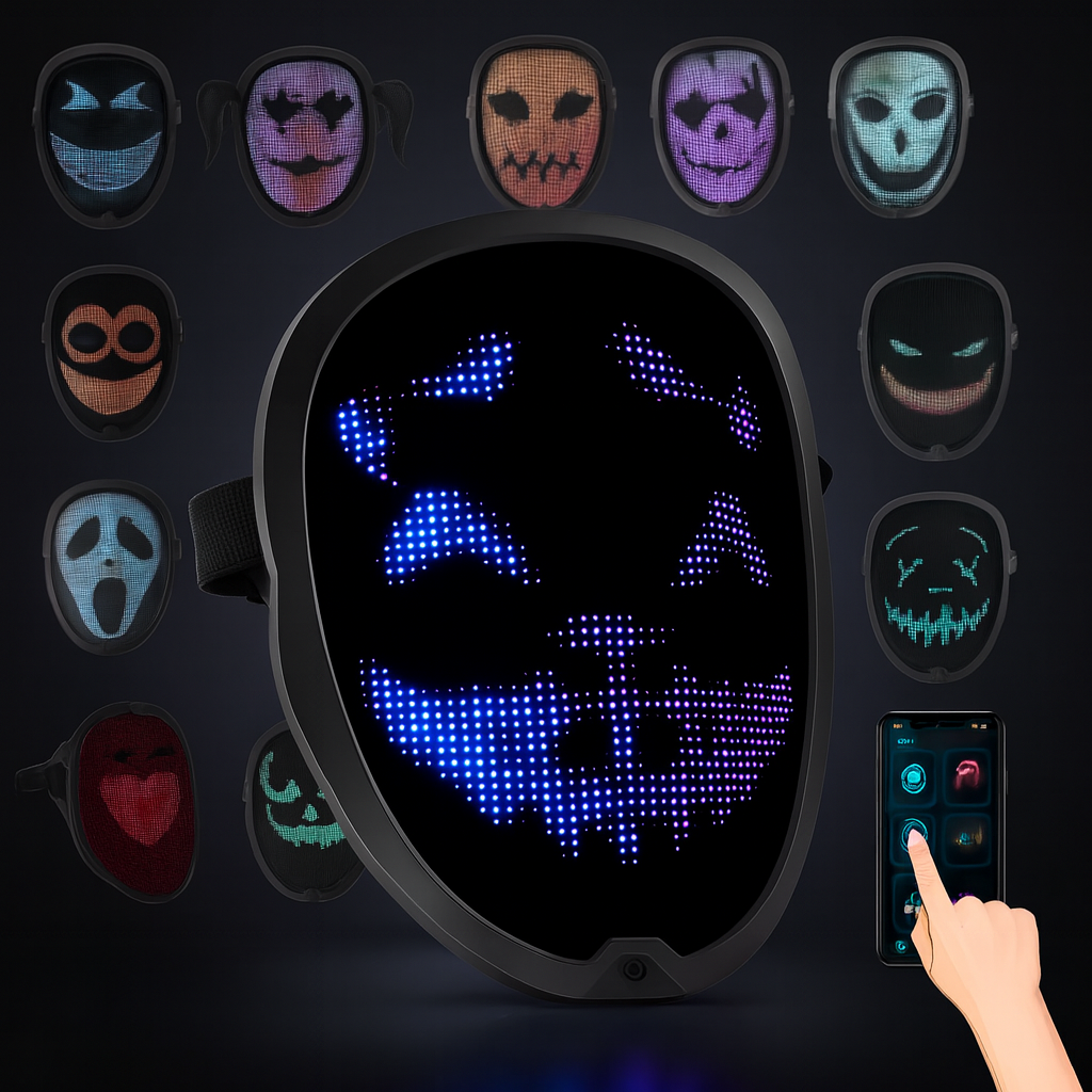 Atrévete a destacar con esta increíble máscara electrónica con pantalla LED, controlada desde tu celular. Cambia de cara en segundos, anima con luces y sé el centro de atención en cualquier fiesta, evento o video.